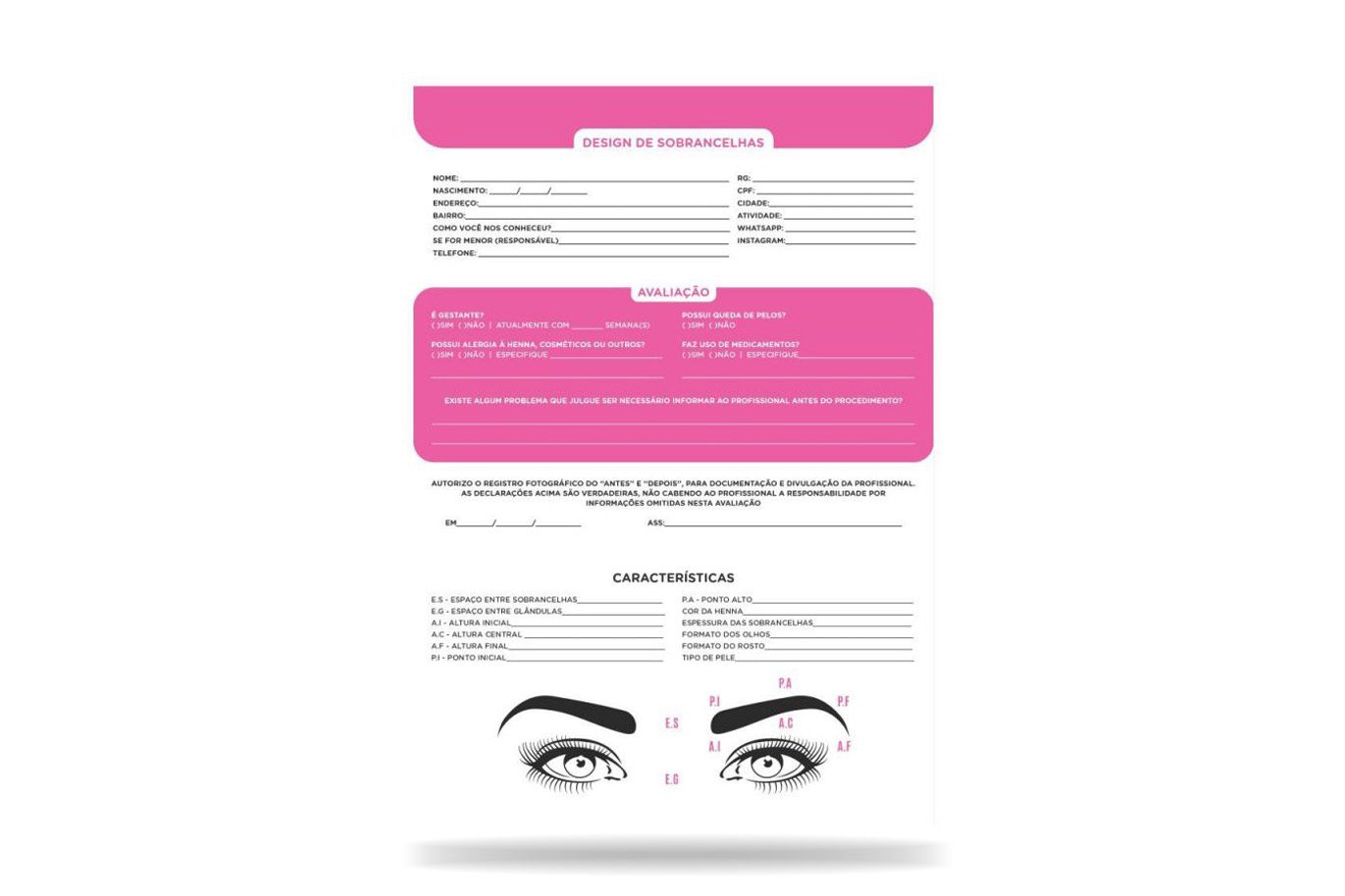 Ficha de Anamnese Design de Sobrancelhas 100 Folhas