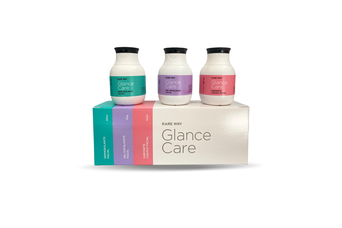 – 1 Sabonete Liquido Facial 60ml: O Sabonete Liquido Facial contém o extrato de Hamamelis e Portulaca que atuam com ação adstringente e hidratante. Limpa profundamente a pele e desobstrui os poros, ajudando a eliminar as impurezas do dia a dia sem provocar ressecamento. Auxilia na preparacao da pele para a acao do Esfoliante Gel Facial Glance Care. Indicado para todos os tipos de pele.